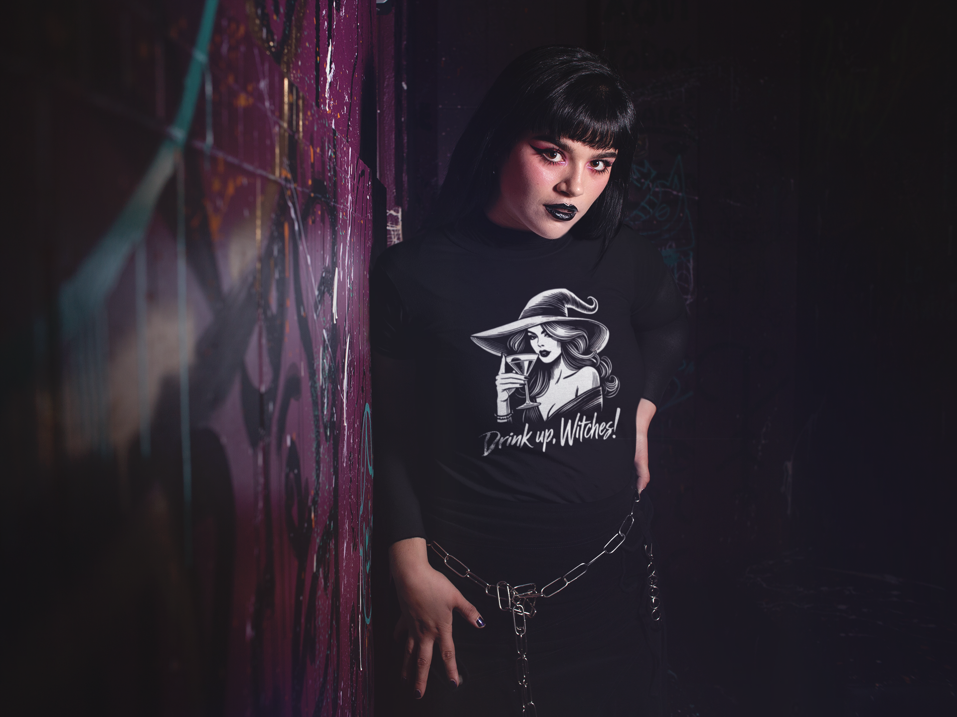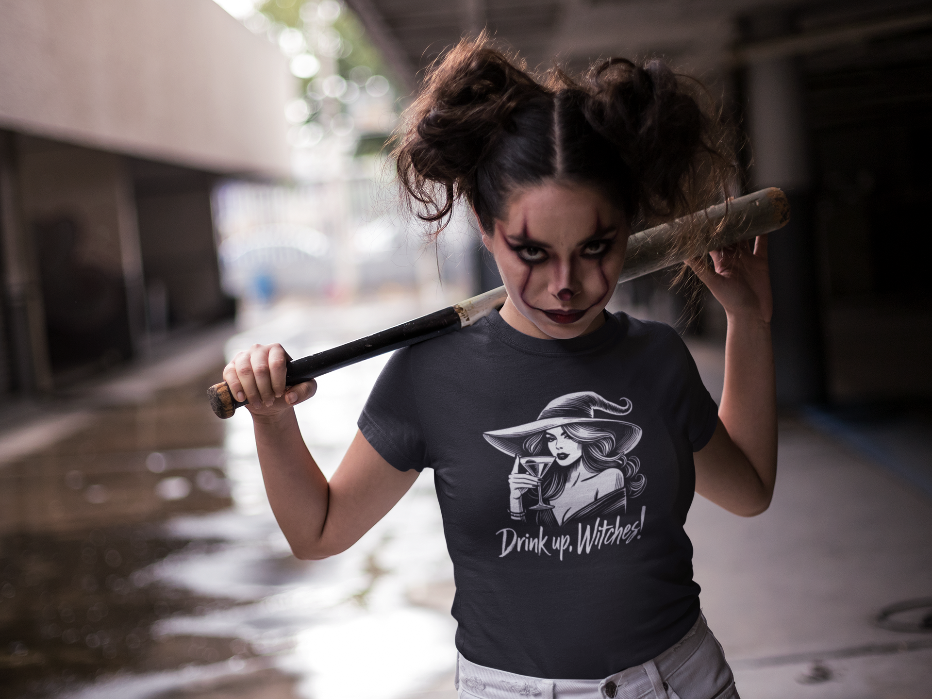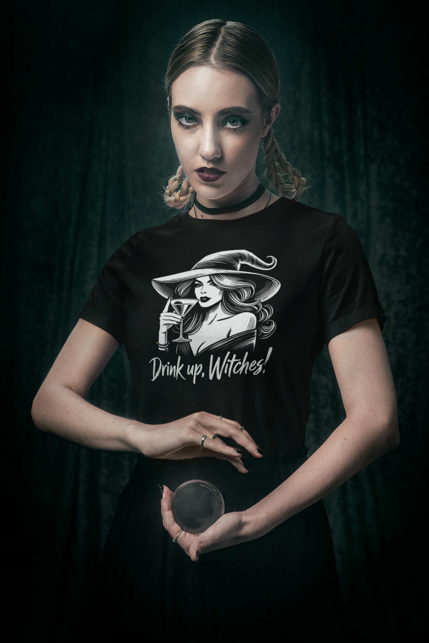 Drink Up Witches! Here's the shirt you're looking for when you don't have the time or money for a costume but you won't miss that epic Halloween party. BONUS if you love the earth (or want to look like you do) because this unisex t-shirt is made from 100% recycled materials.